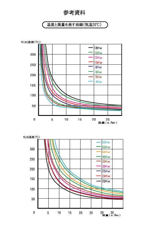 ( Δt℃ × 0.244 × 1.2931 × m3/min. × 60秒 ) ÷ 860cal/h = 必要ヒーター容量kw/h